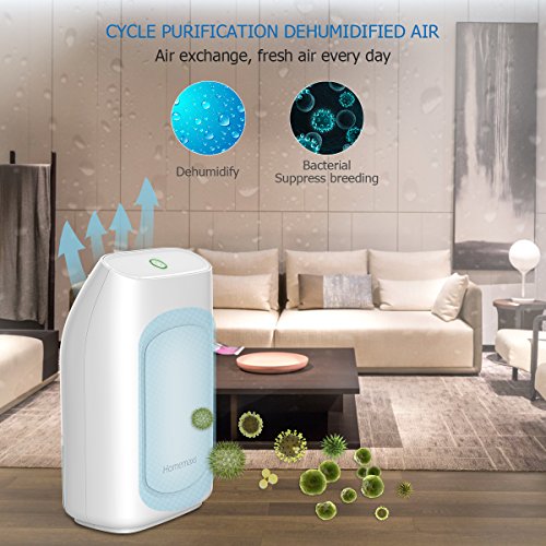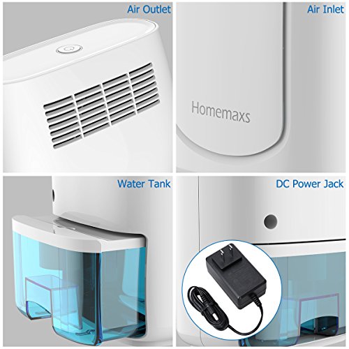 Homemaxs dehumidifier protects your home or basement from mold and mildew, and bring you fresh air. It will help you reduces odor and bacteria, and remove up to 300ml of moisture form surrounding humid air per day