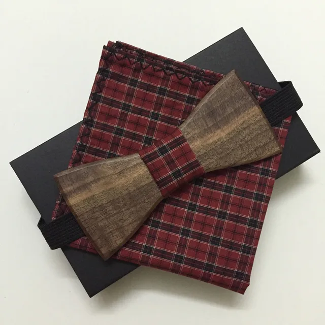 [해외]새로운 디자인 패션 수제 나무 나비 넥타이 나비 넥타이 나비 넥타이 포켓 스퀘어 남성 나무 나비 넥타이