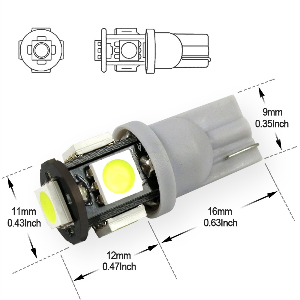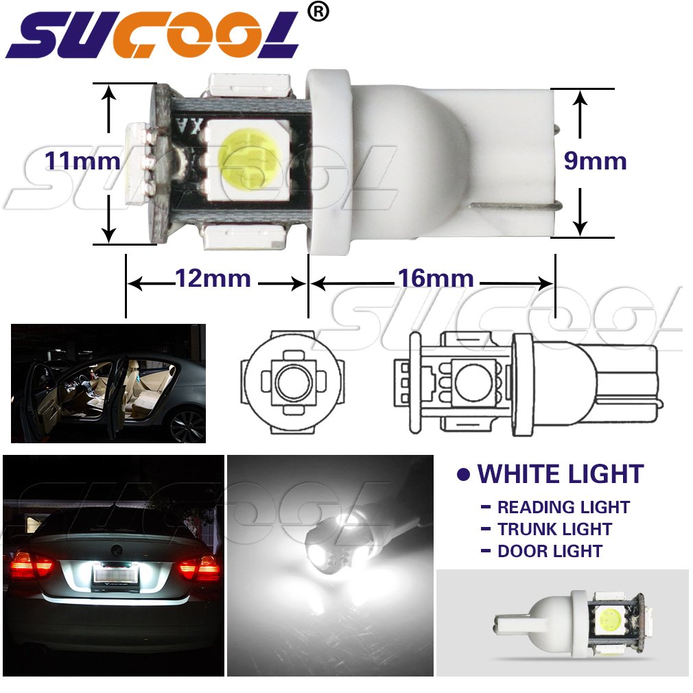 SUCOOL LED 5 series LED 20 pieces T10 wedge type wedge bulb LED white long-life 5SMD valve 12V car