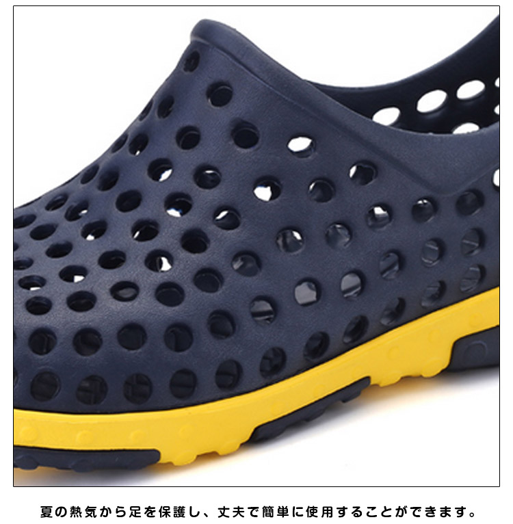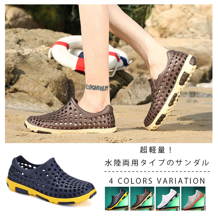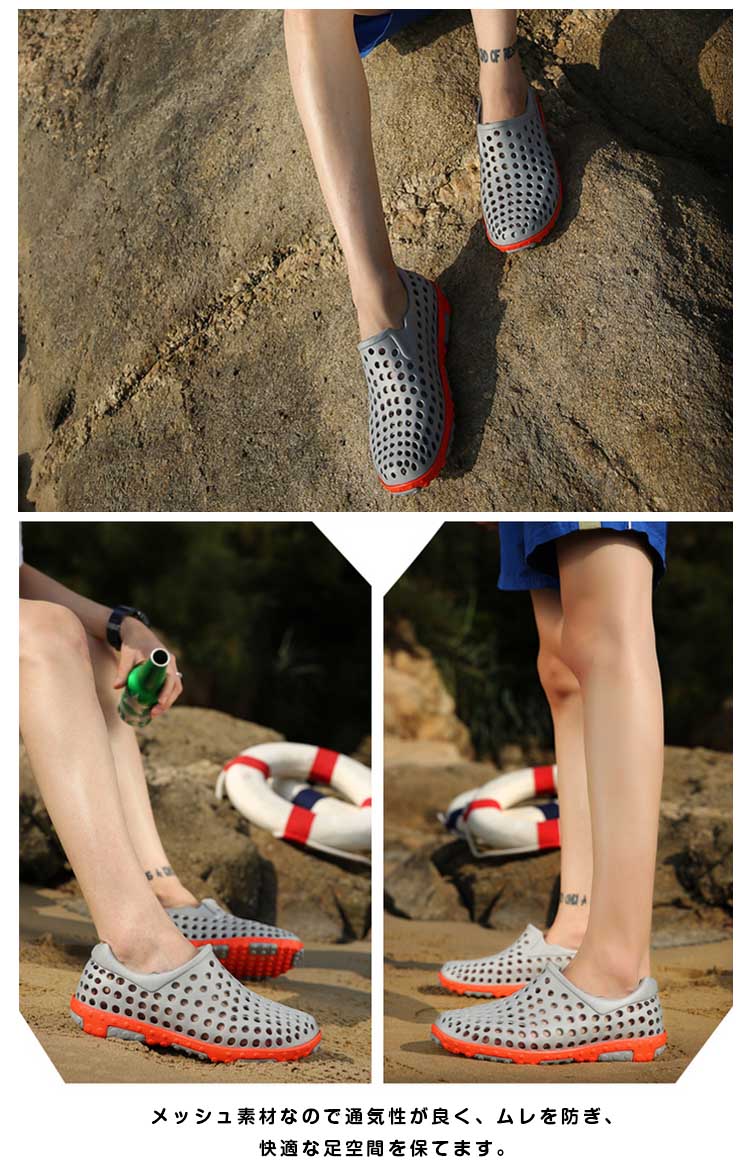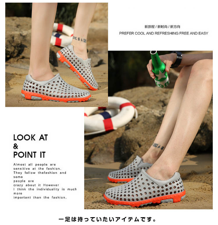 | 超軽量!水陸両用タイプのサンダル。夏遊びを安全に楽しく?!素足を守る柔らかシューズ。メッシュ素材なので通気性が良く、ムレを防ぎ、快適な足空間を保てます。とても軽量なので疲れにくく動きやすく、さらに持ち運びにも便利なので普段履きだけでなくアウトドアにもおすすめ。一足は持っていたいアイテムです。 | |