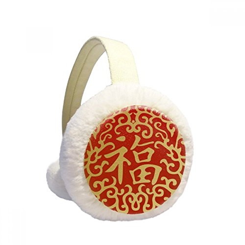 (DIYthinker)/Accessories/Cold Weather Accessories/DIRECT FROM USA/Gold Chinese Fook Rich Symbol Winter Earmuffs Ear Warmers Faux Fur Foldable Plush Outdoor Unise...