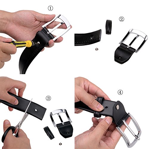 - Feature : Belt Buckle: removable square buckle. / Belt Pattern: novelty and fashion alligator embossed. / Belt width: 38mm. Color: black and brown. / Belt size: 46"-50" (115cm, 120cm ,125cm --- full length of strap). Usually the default length is 115cm (46"). If you need a longer one, please leave us a message. / Material: genuine leather strap and alloy buckle.