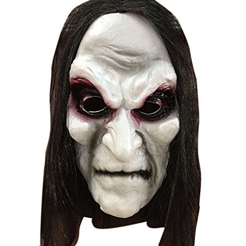 -. Title : RoseSummer Black Long Hair Halloween Mask Full Head Horror Mask Party Goods Cosplay Ghost