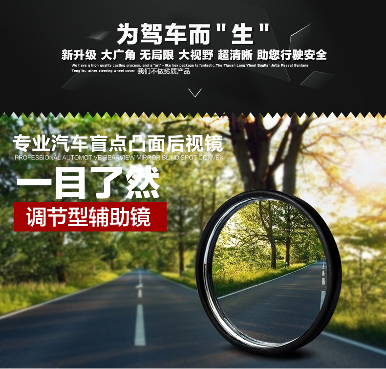 汽车小圆镜高清无边360度可调节后视辅助镜车用盲点镜倒车广角镜