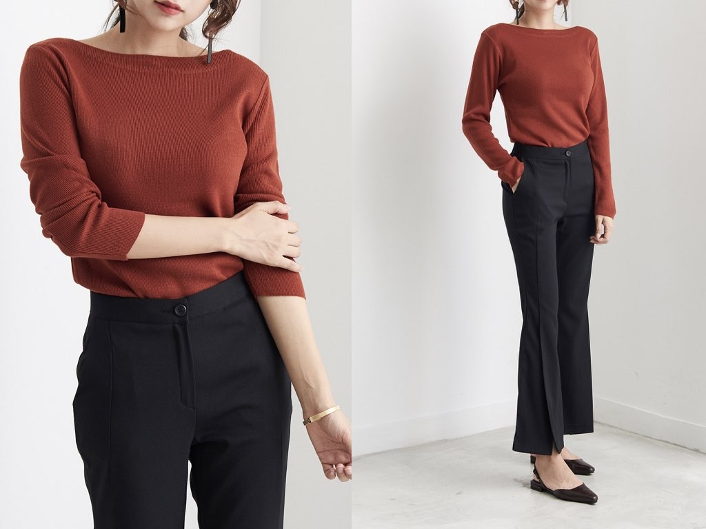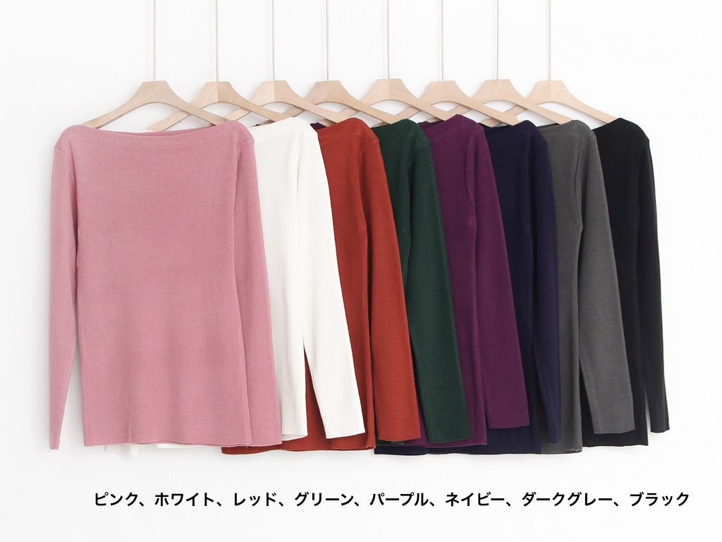 8色展開のボードネックのニットです。オフィススタイルでも、休日のカジュアルなスタイルでもこなれ感が抜群です。着丈は、お尻が隠れるくらいの長さのデザインとなっています。1.基本情報色:8色展開(ピンク/ホワイト/レッド/グリーン/パープル/ネイビー/ダークグレー/ブラック)サイズ:Free素材:アクリル製造国:Korea2.サイズ情報肩幅:38cm 身幅(胸断面):39cm 腕の長さ:57cm 着丈(前):64cm (サイズは計る方法に応じて±2〜3cmの誤差があります。ご了承お願い致します)モデル着用サイズ:F※着用モデル(163cm、体重47kg、足のサイズ24.5cm)3.その他の情報厚み:中間透け感:なし伸縮性:中間裏地:なし洗濯方法:ドライ(クリーニング)[注意事項]お取り寄せ商品は、海外より仕入れるため納品まで約10日前後いただきます。また店舗でも販売しており、在庫切れになる場合もございます。ご了承お願い致します。