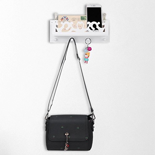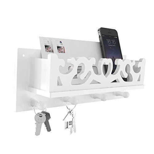 - Wall mount mail holder with one storage basket and 4 key hooks