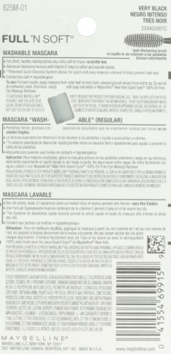 Maybelline Makeup Full 'N Soft Washable Mascara, Very Black Volumizing Mascara, 0.28 fl oz