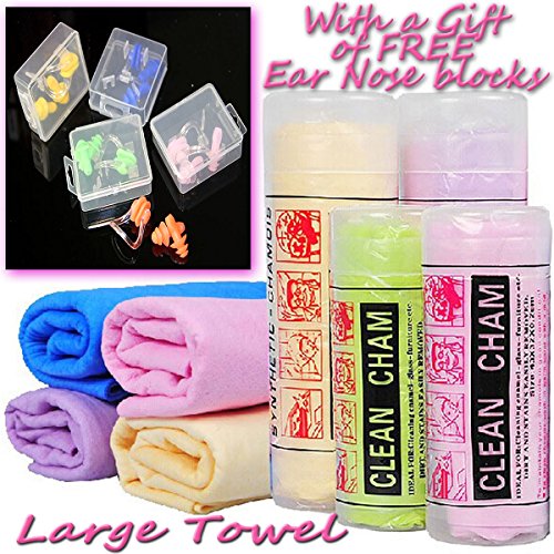 -. Feature : You will not find such a convenient efficient wipe towel for drying! Our chamois will be your wise choice size: 26x17x0.08 inchs (66x43x0.2 cm) / A Unique Material. Efficient adsorption with a Quality Garantee Even if you use it again, just wring out the water and WOW you are super dry again / Wide usage range of Hair & Pet fur drying Car Care, Household, No water mark stain nor damage to items after cleaning and so on.Our recommended wipe with high working effeciency will always be with when necessary / Compare to other Towel products, even Terry Towel. it is more than 6 times Super strong adsorption ability.Green & Environmental Protection / Super-absorbent swim towel chamois, Absorbs many times its weight in water, Great for all water sports. with Silicone Ear Plugs and Nose Clip,it is good for swimming