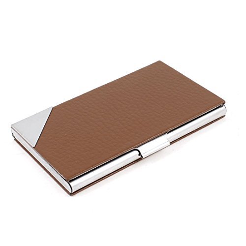 (DealMux)/Accessories/Wallets, Money Key Organizers/DIRECT FROM USA/DealMux Metal Lichee Pattern Clip Closure Business Card Case Holder, Brown