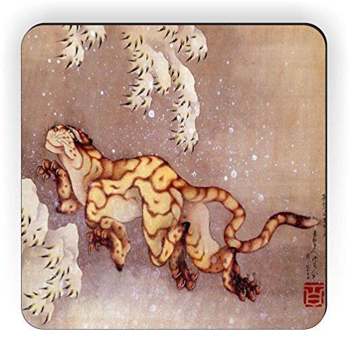 Rikki Knight Katsushika Hokusai Art Tiger in the Snow Design Square Fridge Magnet