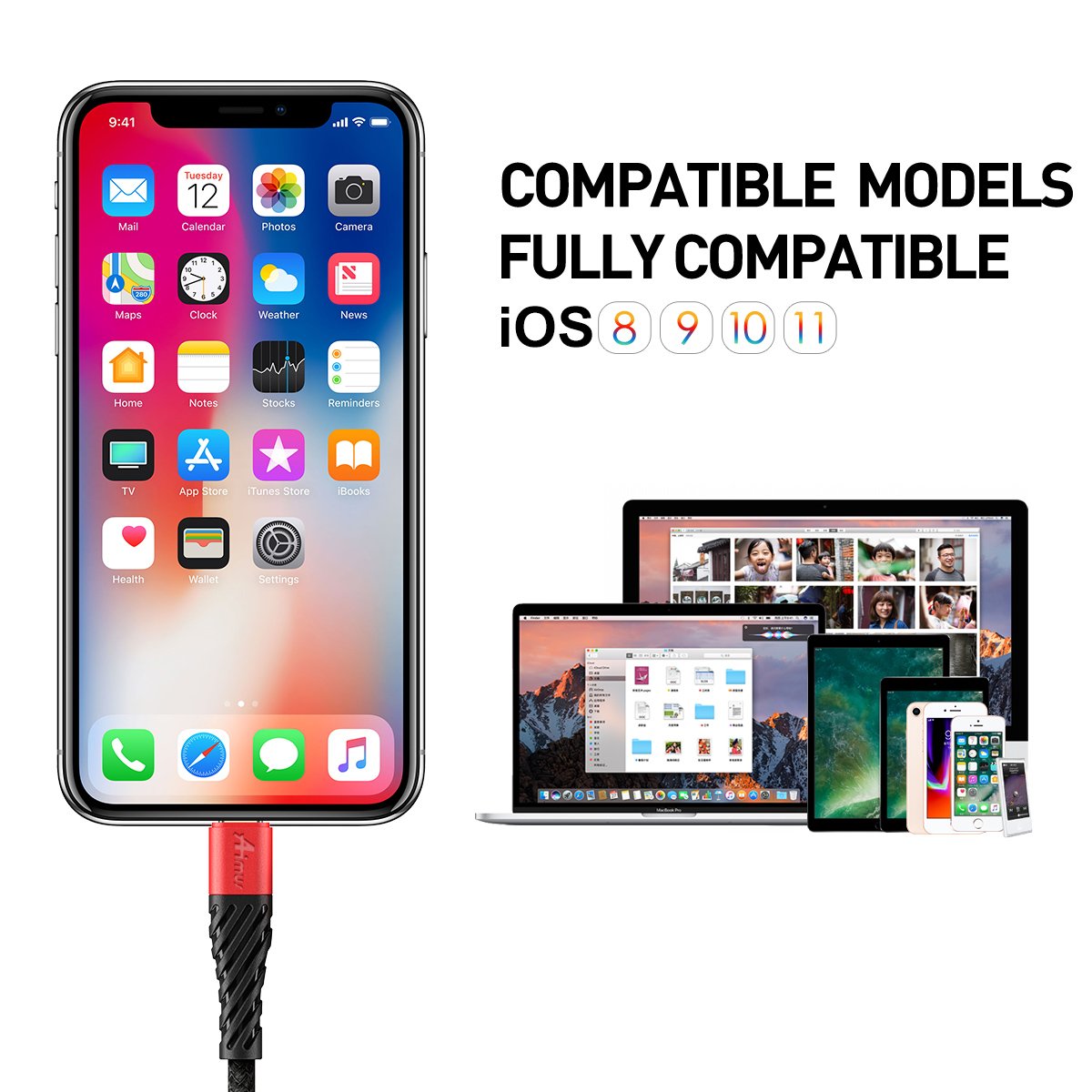 iPhone X / 8 Plus / 8/7 plus / 7/6 s Plus / 6 Plus / 6 s / 6/5 s / 5 c / iPad Air / Air 2, iPad mini / mini 2 / mini 3, iPad 4 generation, iPod nano