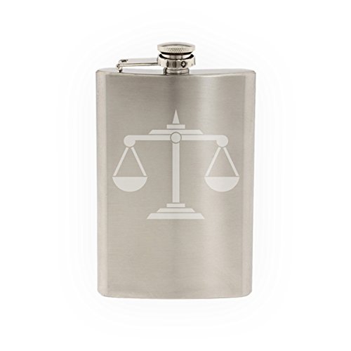 -. Title : Scales of Justice - Etched 8 Oz Stainless Steel Flask