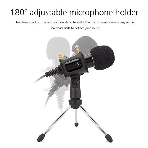 ★ FOLDABLE TRIPOD: Ultra-kompaktes Design fur maximale Portabilitat, Plug-and-Play fahrerloses Setup und Performance. Kit beinhaltet: 1 × Black Kondensator Mikrofon, 1 × 360 Grad Flexible Rotation Desktop Stand, 1 × 3,5 Stereo Plug Audio Kabel, 1 × Headset Adapter.