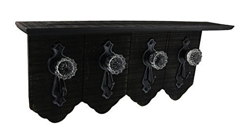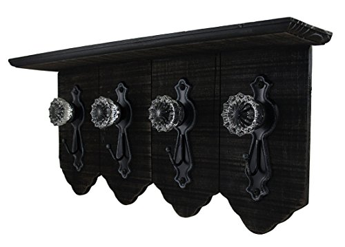 4 Antique Style Doorknobs with Key Hooks On Distressed Wood Wall Shelf