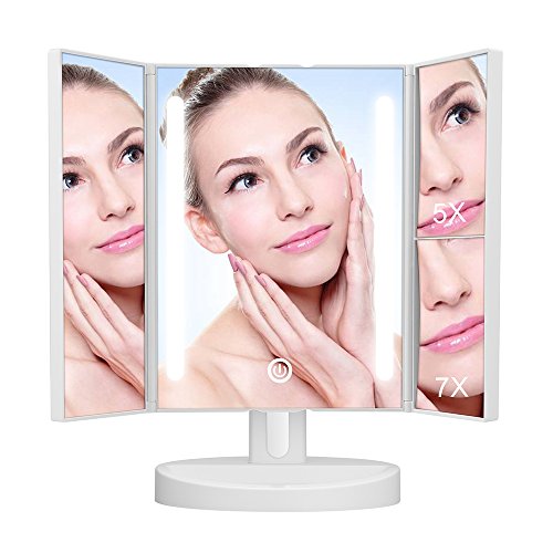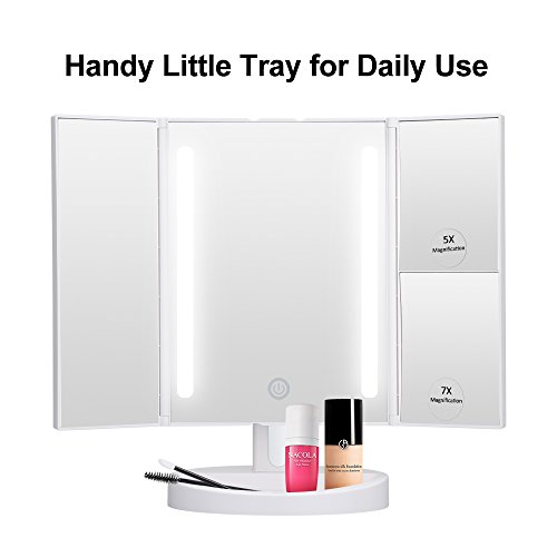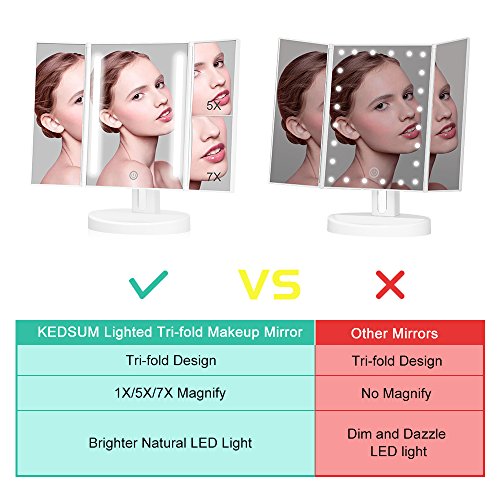 KEDSUM LED Lighted Trifold Makeup Mirror, 1X/5X/7X Magnifying Vanity Makeup Mirror with Lights,Dual USB/Battery Supply,180 Degree Rotation,...