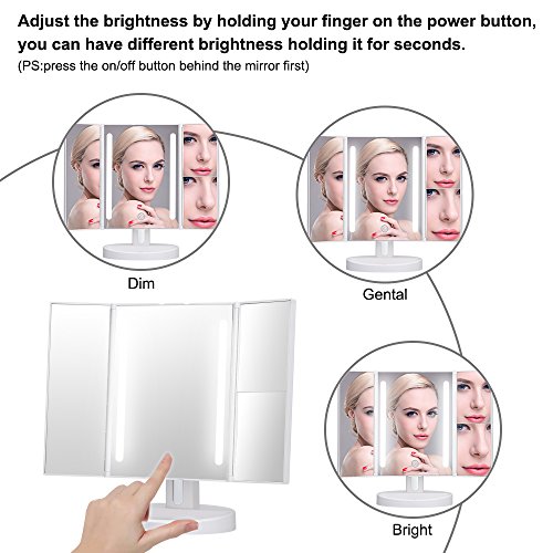 Tri-Fold design: Portable for travelers and daily maintenance, the size of the mirror is about 13.2inch X 8.7inch when it was opened.View 180°angle of your face makes it more efficient on your purpose and flawless. Even feel more relax to makeup when on the go.