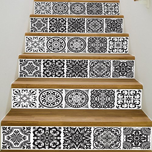 Uphome 6 PCS 3D Floral Tile Self-adhesive Stair Stickers Removable Waterproof Wall Stickers - Stair Riser Decal for Living Room, Hall, Kids Room Decor (Floral Tile)