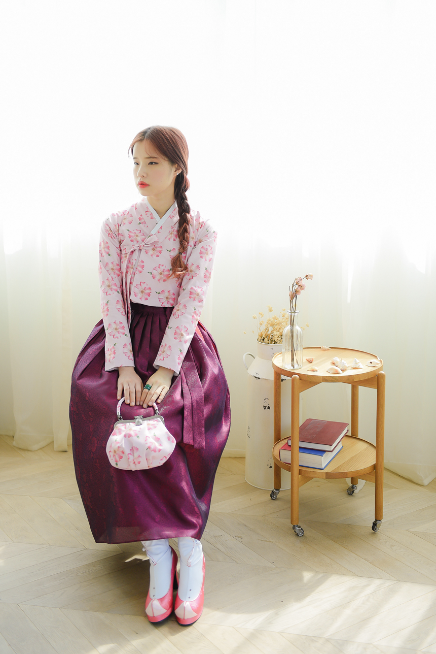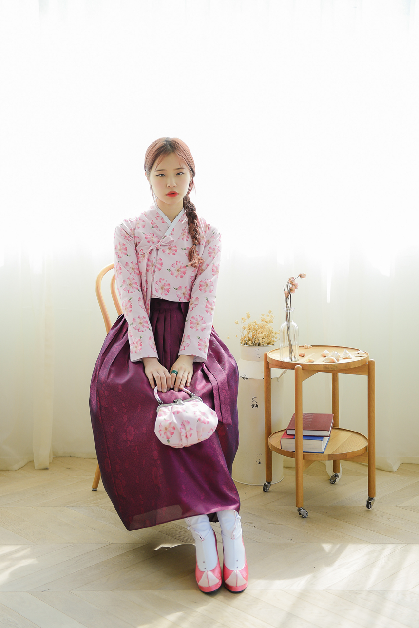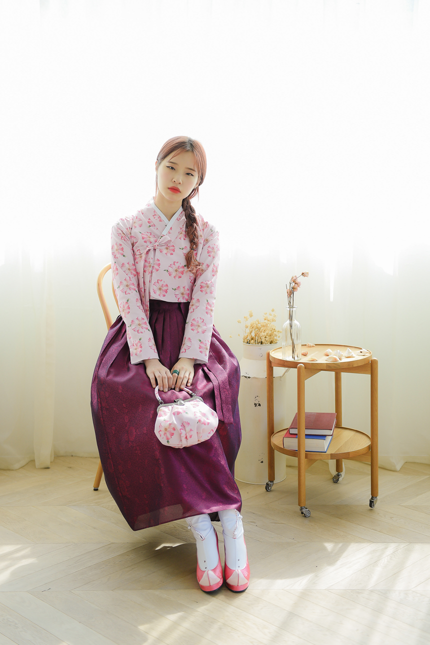 입은사람의 얼굴까지 화사하게 피어나는듯한 효과를 주는것 같은 핑크블로썸 저고리입니다.