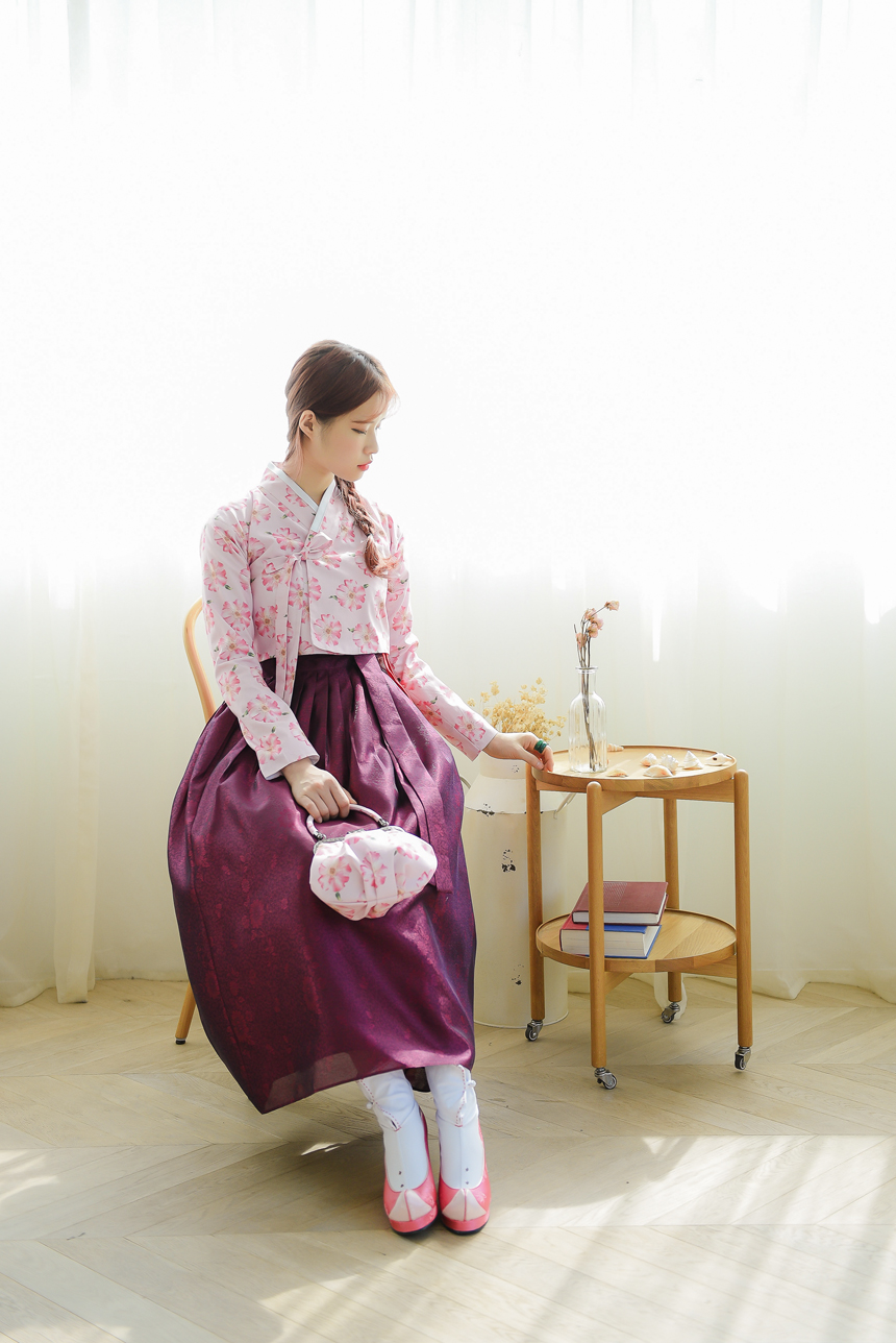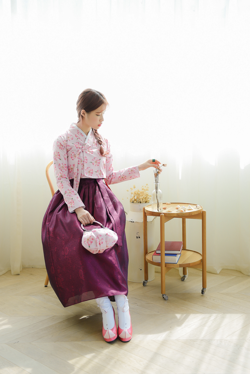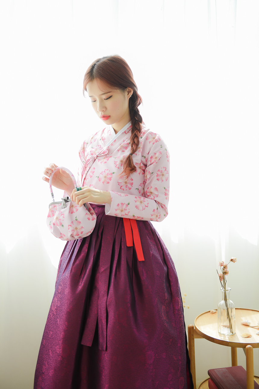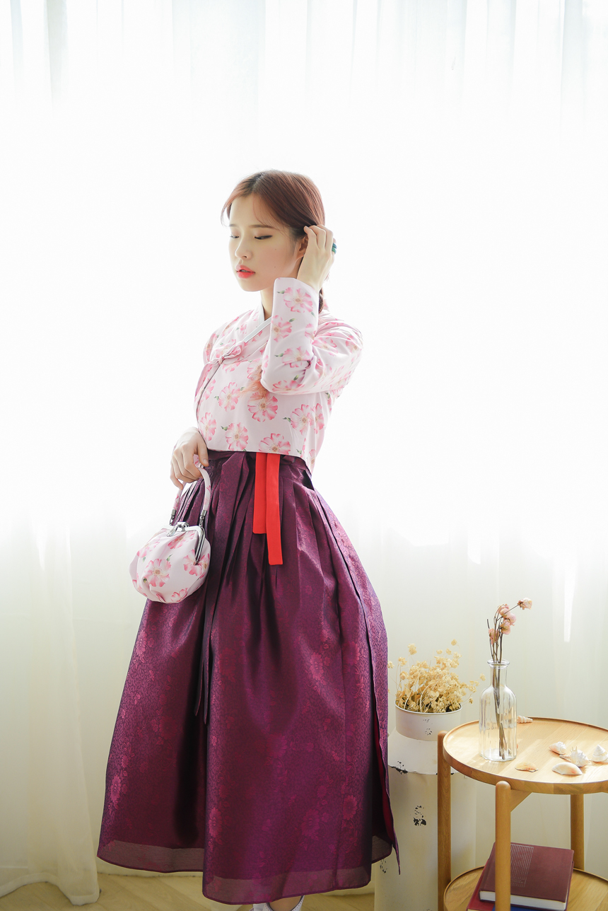 입은사람의 얼굴까지 화사하게 피어나는듯한 효과를 주는것 같은 핑크블로썸 저고리입니다.