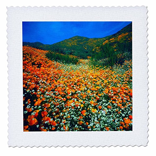 3dRose USA, California, Lake Elsinore. Wildflowers Covering a Hillside. - Quilt Square, 14 by 14-Inch (qs_209374_5)
