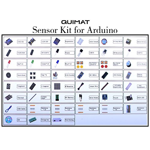 Quimat UNO R3 Project Starter Kit for Aruino,Complete Robotics Sensor Kit with Breadboard,Protoboard,Nano Board,5V Relay,Power Supply Module,Servo Motor,9V DC Battery with Free Instructions …