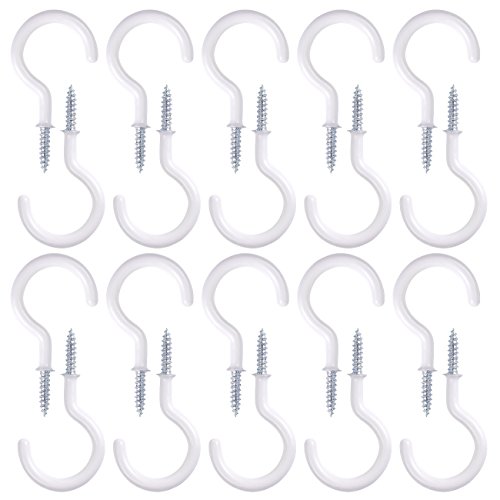 20 Pieces Ceiling Hooks - Rubber Coated Screw Hooks for Holding Tea Cups, Coffee Cups, Plants, Tools, Diameter of 1 Inch, White