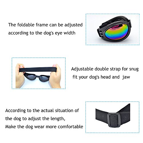 Fashionable water-proof multi-color pet dog sunglasses eye wear Protection goggles for medium large dogs cats puppies Fun, yet functional design - total protection wind, water, debris Wider nose bridge, deeper lens cup, sturdier frames than other brands Foam cushion frame,foldable,easy to carry,Adjustable head and chin straps