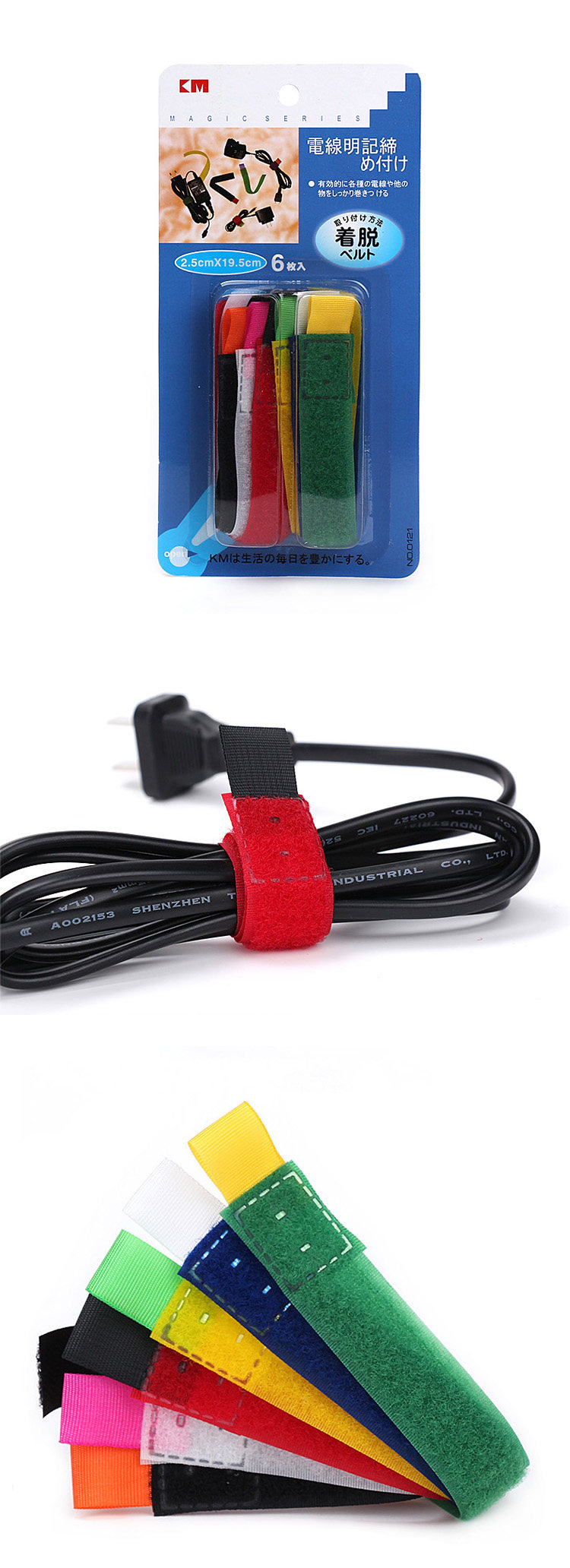 Japan genuine Velcro straps for computer wire cable management tie line with finishing tied with six loaded