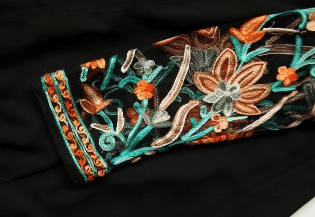 ロングガウン/花柄/レディース/カーディガン/七丈袖/カットソー/UVカット/カーディガン/シフォン/透け感/日焼け防止/海/ビーチ/ロング/UV対策/羽織り/フラワー/フリンジ/刺繍