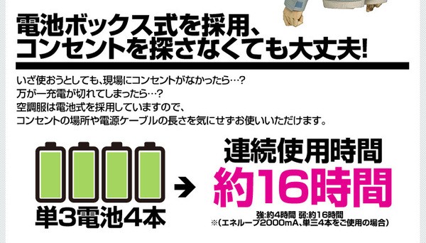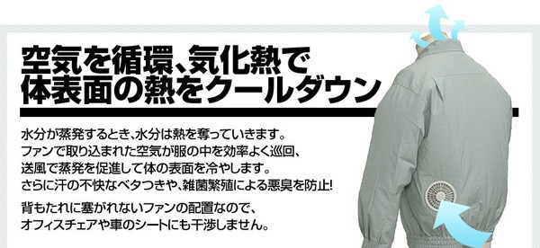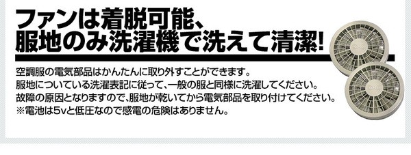 上着は着用しないでください。ファンの空気取り入れ口が、上着でふさがれてしまいますので、空調効果は期待できません。 "お洗濯の際は、ファンやケーブルなどの電気部品を取り除き、服だけをお洗濯してください。