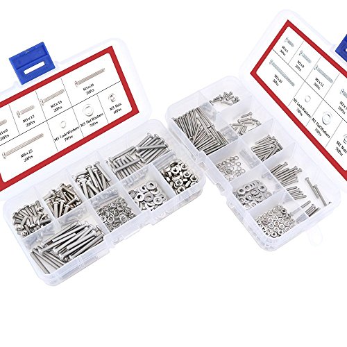 Hilitchi 600-Piece M2 M3 Phillips Pan Head Screws Bolt Nut Lock Flat Washers Assortment Kit, 304 stainless steel