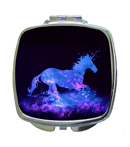 Galactic Unicorn - Compact Mirror in Silvertone - Square Shaped - Pocket Sized