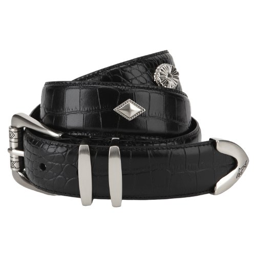 New Concho belt from Greg Norman. Two different Conchos on a croco embossed leather strap. Double keeper and pattern roller buckle.