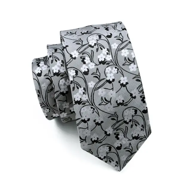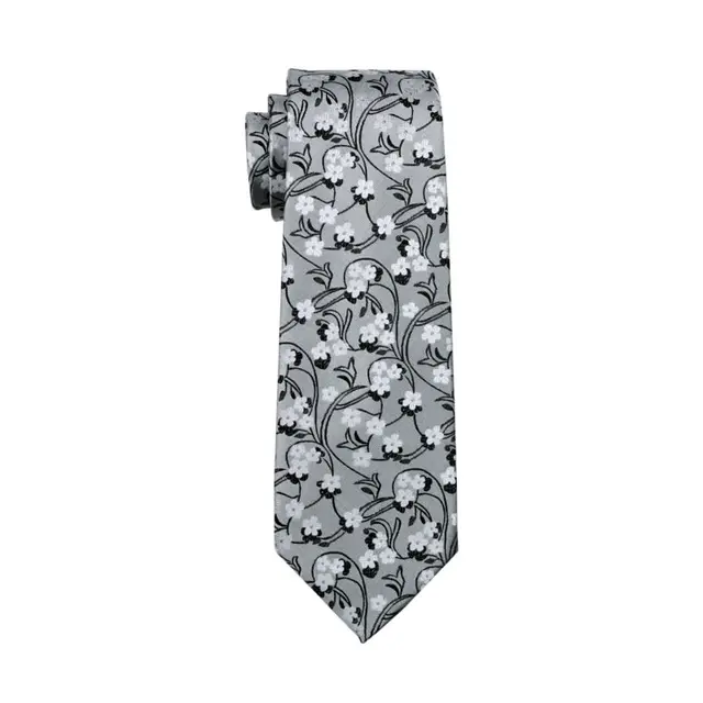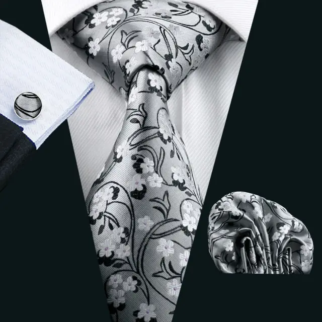 LS-996 넥타이 그레이 꽃 100% 실크 자카드 짠 넥타이 손수건 커프스 세트 남성 정장 웨딩 파티 무료 우표