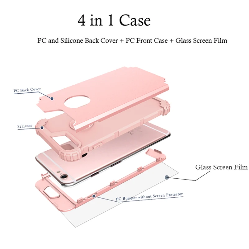 Style 2:4 in 1 360 Degree Case For fundas iPhone 6 6S Plus Case Tempered Glass