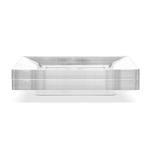 EDGE CLEAR PLASTIC PARTY DISPOSABLE PLATES | 9 Inch Hard Square Wedding Dinner Plates, 20 Ct | Elegant & Fancy Heavy Duty Hard Party Supplies Salad Plates for Holidays & Occasions