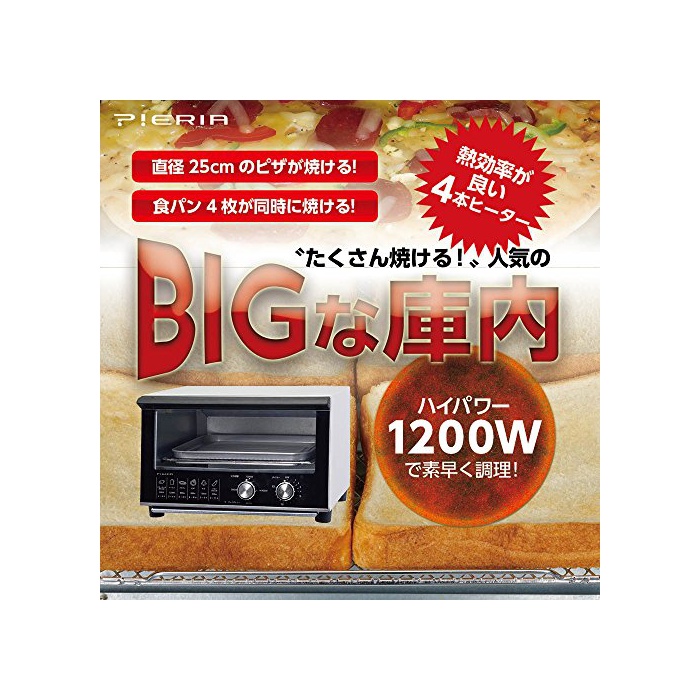 드 소《샤》 《피에리아》 빅 오븐 toaster 화력4단계 교환 1200W 4 매구이 블랙&화이트 DOT-1503 BW
