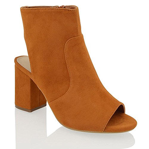Studio : ESSEX GLAM Publisher : ESSEX GLAM Binding : Apparel Product Description Women's Mid Block Heel Open Back Cut Out Peep Toe Shoe Boots