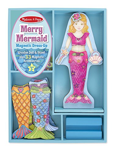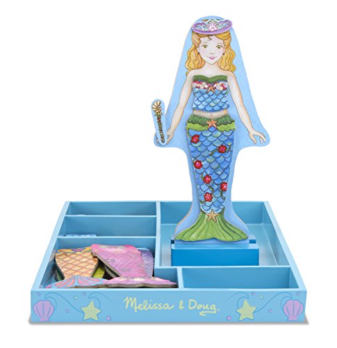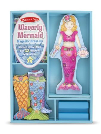 Studio : Melissa Doug Publisher : Melissa Doug Binding : Toy Product Description Wonderful Waverly has all the beauty and grace of the flowing waters she lives in. What could make her even lovelier? A custom-made mermaid ensemble! This magnetic play set has everything kids need to design countless pretty combinations, including swim tops, mermaid tails, and even a pretty pink ball gown for evenings on land. Simply slot the wooden magnetic figure into the sturdy stand, then place the magnetic garments and accessories to dress her up in style. The durable wooden storage tray comes stocked with one wooden doll, wooden stand, and 33 magnetic dress-up pieces. 0