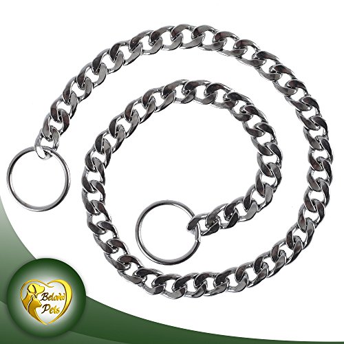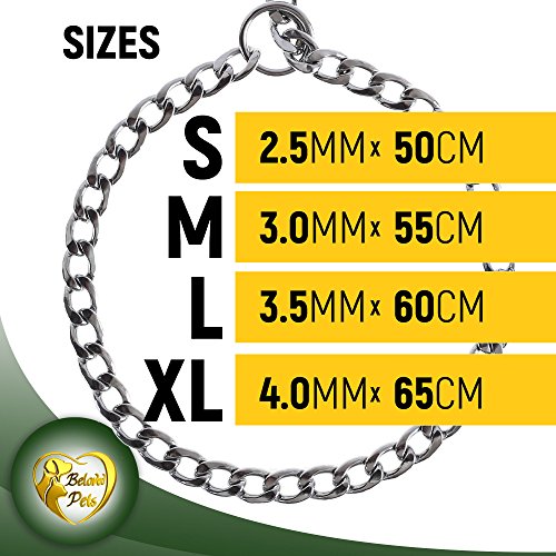 Beloved Pets offers reliable and high-quality accessories for animals. Our chain collar, which is good for big dogs is a classic metallic collar. Our chain collar is also good for small dogs and is made of a high-quality material ? stainless steel, coated by galvanic plating. Beloved Pets’ chain dog collar is even suitable for pitbulls and has a durable construction with reliable link connections. You can be sure Beloved Pets’ best dog collars are absolutely safe for a dog, is comfortable and is built to last. If you want to emphasize the essential power of the breed or just prefer wear resistant high-quality items, Beloved Pets’ choker chain dog collar is exactly what you need. This accessory for walking your dog is easy to put on/remove and comes in 4 sizes: - S ? diameter 19.7 inch,?