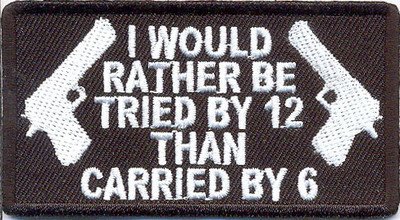 Tried By 12 Carried By 6 GUN CONTROL Funny NRA SEW ON - IRON ON Biker Vest Patch