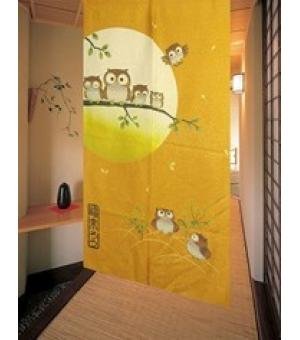 -. Title : Sieben Japanische Luck Eulen (Golden Gelb) -noren Stoff Vorhänge D3040