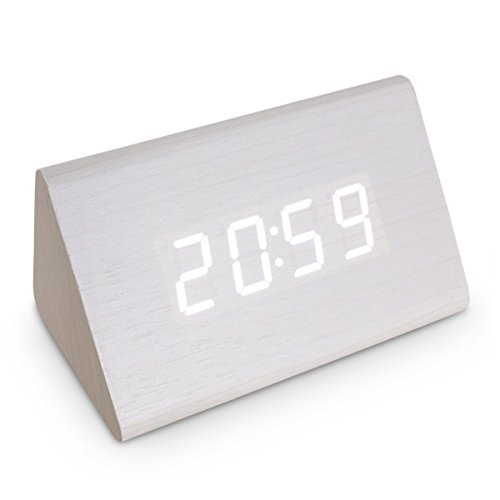 HQr Digital Triangle Wooden Design Desktop Morning Alarm Clock With Time Temperature and Calendar Display & Sound Control - Black/Green LED
