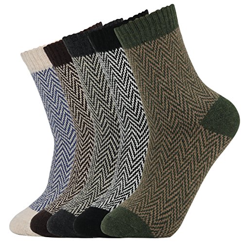 -. Title : 5 Pairs Mens Vintage Style Fall Winter Soft Warm Thick Knit Wool Crew Socks