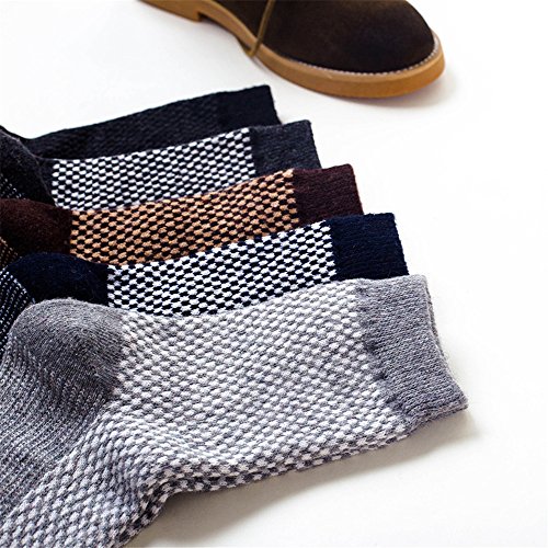 -. Feature : Soft and comfortable, breathable, wearable, moisture-wicking and odor-fighting. Closer touch to feet, set you free and warm in the cold weather. / Vintage and trendy design warm wool socks, Lively and bright colors makes these socks flirty and fun. Whether at home or follow your clothes and shoes are Perfect. / They are warm and not too thick and heavy, and just the right thickness for comfort and warmth with boots, loafers or sneakers. / One Size fits most , fit men shoes size 6-10.They are elastic and perfectly make it suitable for your feet. / Package and Warranty : Pack of 5 attractive colors crew socks for Fall, Winter . We offer a 100% Satisfaction Guarantee. Totally Worry Free: Satisfaction or get your money back .
