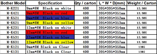 -. Feature : Model: M-K231, mk231, M231 / Size: 12mm(0.47")*8m(26.2') / Color: Black on White / Delivery time:Within 3 days after the payment / Compatible For Brother Ptouch Label Maker