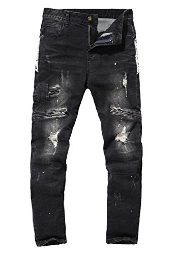 -. Binding : Apparel -. Brand : MR. R -. Color : Black -. Department : mens -. Feature : Zip fly with button closure / Basic 5 pockets / Tapered leg / Zipper decoration / Choose the size based on your natural waist. If it falls between, choose the bigger one -. ProductGroup : Apparel -. ProductTypeName : PANTS -. Title : MR. R Men's Stretch Ripped Biker Jeans Black