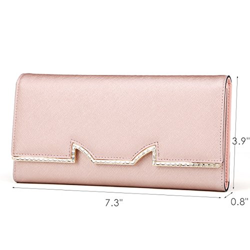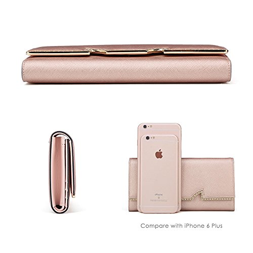 Binding : Apparel Product Description FOXER - LIGHT UP FOR YOU Material: Split leather (cowhide leather), polyester silk lining Dimensions: About 7.3" L x 0.8" W x 3.9" H Weight: About 0.37 pounds Color: Rose gold, Gold Structure: 2 main compartments, 1 zipper compartment, 12 card slots, 2 bill slots and 1 photo or ID window. About Us FOXER was found in 2000, all products created by top designers from Italy. FOXER has been focused on creating beautiful, fashion and suitable products for consumer from its inception, and become a brand leader in high quality leather bags is FOXER eternal pursuit. Warm Prompt: 1. Due to different measurement methods, there may be deviation of 0.1 - 0.4 inches for item 2. Colors may differ slightly from actual colors depending on your monitor, cellphone settings, different camera or light environment. 3. There might be a little smell as you get the new product, it is normal and the smell would disappear in a few days. Care Tips: 1. Keep away from oil, humidity, heat source and sharp instrument. Avoid exposure to chemicals, spikes and heat. Clean it with dry soft cloth when got stains. 2. In order to prevent your leather from fading, please avoid storing it in direct sunlight. 3. Do not dry leather in direct heat when wet. Leave it to dry naturally. 4. When you don't use your leather product for a long time, please store it in a breathable bag rather than a plastic one to avoid a build up of humidity, as the leather product can get mildewed. 0