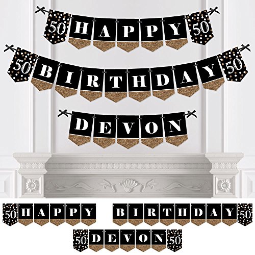 -. Title : Custom Adult 50th Birthday - Gold - Personalized Birthday Party Bunting Banner & Decorations - Happy Birthday Custom Name Banner