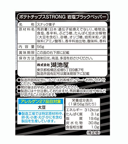 原材料:馬鈴薯(日本:遺伝子組換えでない)、植物油、食塩、香辛料、ぶどう糖、たんぱく加水分解物(大豆を含む)、砂糖、オリゴ糖、焙煎米粉/調味料(アミノ酸等)、香辛料抽出物、酸味料、香料